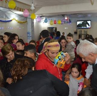 Erbil, 24 December, 2014 - As internally displaced children in northern Iraq are missing their homes, the Assyrian Aid Society of America and the Iraqi Christian Relief Council did not want them to miss a gift for Christmas. In coordination with the Assyrian Women's Union of Iraq, the AAS-I implemented a gift distribution on December 24, 2014 to 250 children whose families are living in the Ankawa Mall. In attendance were Father Emmanuel Adil, who is the responsible for the families living at the Mall, Mr. Imad Dadiza and Assyrian Women's Union of Iraq members: Mrs. Romy Yousif, Mrs. Wardiya Tamriz, Mrs. Zuhira Casper and Mrs. Susan Youkhana. Father Emmanuel and Mrs. Yousif shared a Christmas message with the children and thanked the organizations who made this distribution possible and wished the families a prosperous 2015 and safe return to their homes in the near future.
